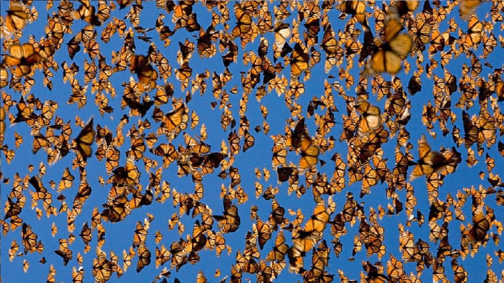 পাইন আর দেবদারুর ডালে ডালে প্রজাপতির ঝাঁক। যেন পাখায় পাখায় রং ছড়িয়ে বেড়াচ্ছে তারা। মেক্সিকোর শীতকালীন অতিথি এই রাজকীয় প্রজাপতি। আকৃতিতে খানিকটা বড়, তাই নাম মোনার্ক। কমলা ও কালো রংয়ের কোটি কোটি পতঙ্গের বিচরণে মুখরিত দেশটির মধ্য ও উত্তর-পশ্চিমাঞ্চলীয় পাহাড়ি এলাকা।