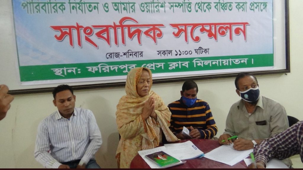 সংবাদ সম্মেলনে লিখিত বক্তব্যে নাজমা আক্তার অভিযোগ করেন, শহরের কমলাপুর মহল্লায় তার বাবার এক একর ৬২ শতাংশ জমি রয়েছে। তারা দুই ভাই ও তিন বোন। সে হিসেবে তার পিতার সম্পত্তি থেকে ২৩ শতাংশ জমি পাওয়ার কথা। গত ১০ নভেম্বরে তিনি ও তার আরেক বোন পৈত্রিক ওই জমি থেকে ৪৬ শতাংশ জমি হায়দার আলী, মোশাররফ হাওলাদার, আজিজুল ইসলাম মৃধা ও খায়রুজ্জামানের নিকট বিক্রি করেন। গত ২২ নভেম্বর ওই জমি বুঝিয়ে দিতে গেলে তার ভাই আনোয়ারুল ইসলাম পুলিশ এনে বাধা দেন। পরে এ ব্যাপারে গত ২ ডিসেম্বর বিকেল ৩টায় ফরিদপুর কোতয়ালী থানায় সালিশ বৈঠকের দিন ও সময় ঠিক করা হয়।