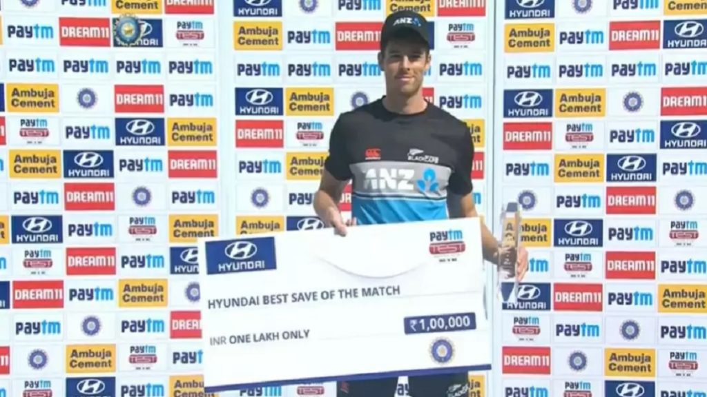 মুম্বাই টেস্টে একাদশে না থেকেও ১ লাখ রুপি পুরস্কার জিতেছেন মিচেল স্যান্টনার। দুর্দান্ত ফিল্ডিংয়ের কারণেই এই পুরস্কার পান তিনি। ভারতের বিপক্ষে টেস্ট সিরিজ হারলেও বাড়তি আলো কেঁড়েছে তার সেভগুলো।