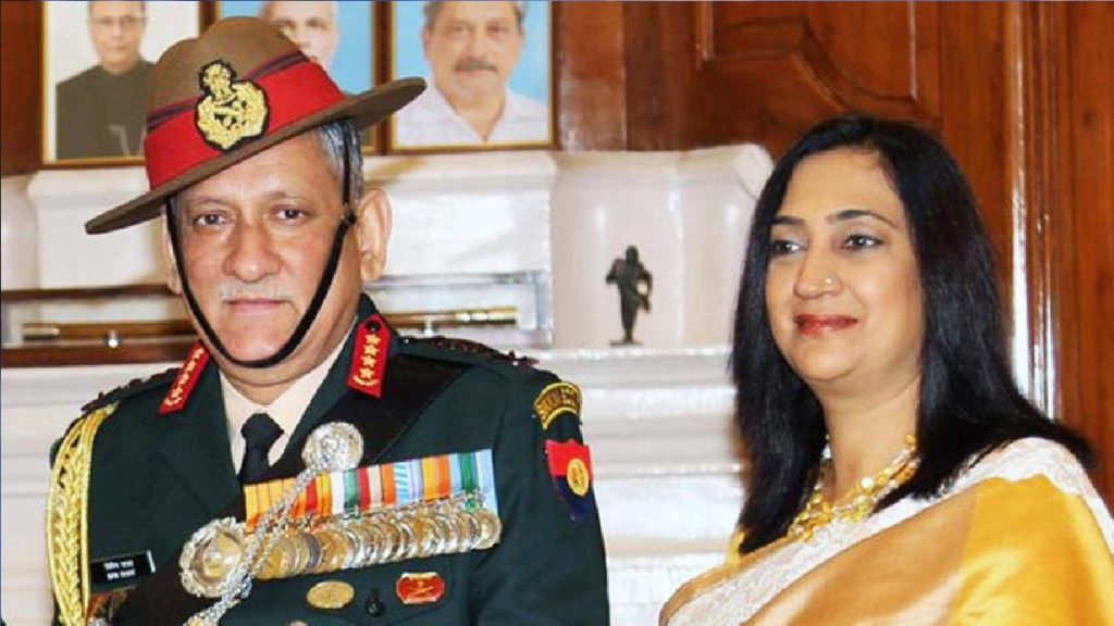 ভারতের প্রথম সেনা সর্বাধিনায়ক তথা চিফ অব ডিফেন্স স্টাফ (সিডিএস) বিপিন রাওয়াত বুধবার (৮ ডিসেম্বর) ভারতের তামিলনাড়ুতে সামরিক হেলিকপ্টার বিধ্বস্ত হয়ে নিহত হয়েছেন। এ দুর্ঘটনা প্রাণ গেছে বিপিনের স্ত্রী মধুলিকা রাওয়াতেরও। শুধু ভারতীয় সেনার সর্বাধিনায়কের স্ত্রী হিসেবে নয়, সমাজসেবী হিসেবেও তার সুখ্যাতি ছিল।