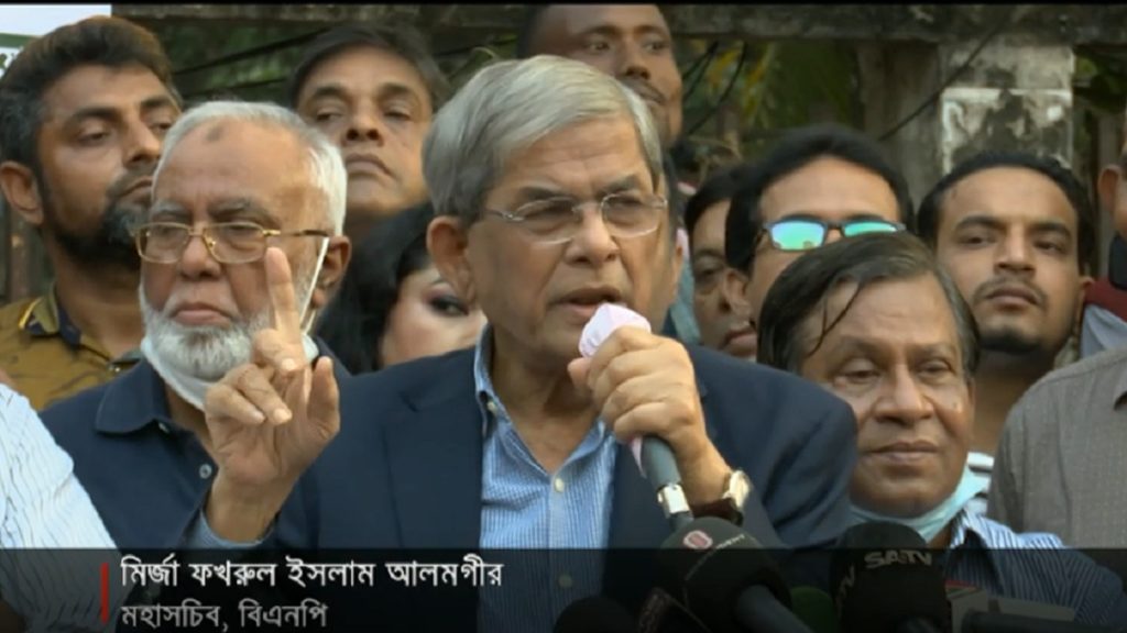 সরকার পতনের ঘণ্টা বাজতে শুরু করেছে মন্তব্য করে ফখরুল বলেন, চারদিকে এখন বর্তমান জনবিচ্ছিন্ন সরকারের পতনের ঘণ্টা বাজতে শুরু করেছে বলেই সরকার দিগ্বিদিক জ্ঞানশূন্য হয়ে বিএনপিসহ বিরোধী দলের নেতাকর্মীদের ওপর নানান কায়দায় জুলুম-নির্যাতন চালিয়ে যাচ্ছে। আলালের বিরুদ্ধে মামলা সেটিরই বহিঃপ্রকাশ। আমি আলালের বিরুদ্ধে ডিজিটাল নিরাপত্তা আইনে মামলার ঘটনায় নিন্দা ও প্রতিবাদ জানাচ্ছি এবং অনবিলম্বে মামলা প্রত্যাহারের দাবি করছি।