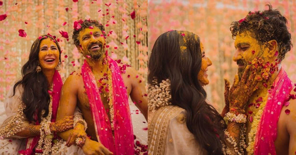 ভারতীয় সংবাদমাধ্যম বলিউড মাসালার এক প্রতিবেদনে বলা হয়েছে, গায়ে হলুদের অনুষ্ঠানের কয়েকটি ছবি সোশ্যাল মিডিয়ায় আপলোড করেছেন ক্যাটরিনা। সেখানে ক্যাপশন হিসেবে তিনি লিখেছেন, ‘শুকর. সাবর. খুশি’।