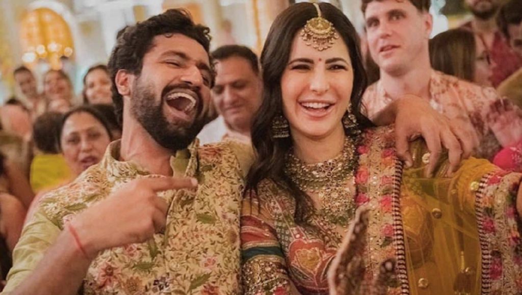অন্যদিকে, ভিকি পরেছিলেন র’সিল্কের একটি গলাবন্ধ জ্যাকেট। সঙ্গে মিন্ট সিল্কের একটি কুর্তা এবং ব্যঙ্গালোর আইভরি সিল্কের চুড়িদার।