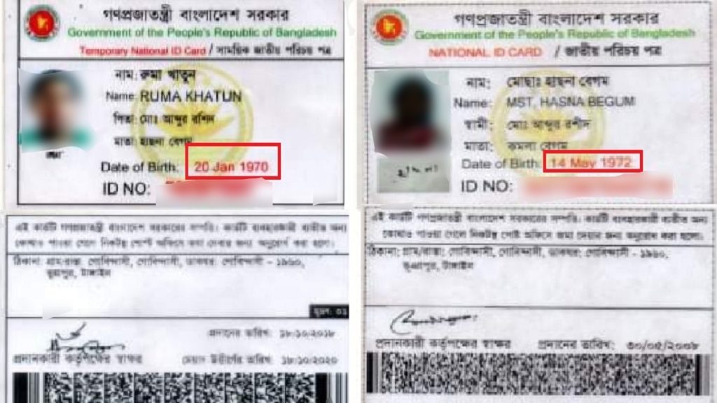 মায়ের জন্মের দুই বছর আগে মেয়ের জন্ম! কথাটি শুনে অবিশ্বাস্য মনে হলেও জাতীয় পরিচয়পত্রে এমনটি রয়েছে টাঙ্গাইল ভূঞাপুর উপজেলার গোবিন্দাসী গ্রামের মেয়ে রুমা খাতুন ও মা হাছনা বেগমের।