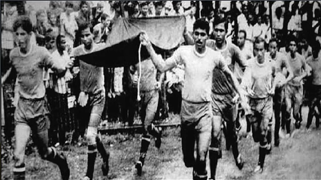 যার শুরুটা হয়েছিল নদিয়ায়। সেই ম্যাচেই জাতীয় পতাকা উড়িয়েছিলেন জাকারিয়া পিন্টু, প্রতাপ শঙ্কর হাজরারা গেয়েছিলেন জাতীয় সঙ্গীত। বাংলাদেশের স্বাধীনতা যুদ্ধে তারা যেন ছিল আলাদা একটা ব্রিগেড। অস্ত্র নয়, ফুটবলকেই তারা বানিয়েছিলেন দেশ মাতৃকার মুক্তির অস্ত্র। বিদেশের মাটিতে বাংলাদেশের পতাকা তুলে ধরেছিলেন তারা, অথচ বাংলাদেশ তখনেও ‘দেশ’ হিসেবে স্বীকৃতিই পায়নি।