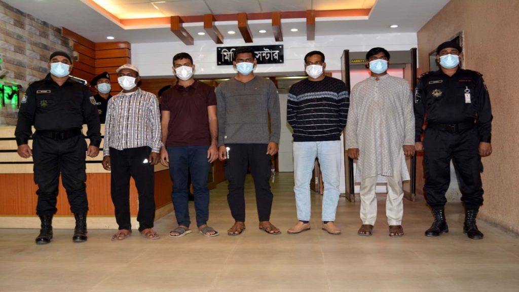 সোমবার (২১ ডিসেম্বর) ভোরে র্যাব-১ এর একটি আভিযানিক দল গোপন গোয়েন্দা তথ্যের ভিত্তিতে গাজীপুর মহানগরীর গাছা থানাধীন কুনিয়া বড়বাড়ি এলাকাস্থ শহিদ জহুরুল ইসলাম রোডের বীর মুক্তিযোদ্ধা জালাল উদ্দিনের ৮ম তলা বিল্ডিং এর ৩য় তলার পূর্ব পাশের রুমে অভিযান পরিচালনা করে ভুয়া র্যাব পরিচয়ে বিভিন্ন অপরাধের সাথে জড়িত ৫ জনকে গ্রেফতার করে। এ সময় ধৃত আসামীদের নিকট হতে ২ টি খেলনা পিস্তল, ২ টি পিঞ্জলের কভার, ২ টি ভুয়া র্যাব জ্যাকেট, ৪ টি ভুয়া র্যাব আইডি কার্ড, ১ টি নৌ বাহিনীর ইউনিফর্ম, ৩ টি নৌ বাহিনীর ফরমেশন সাইন, ১ টি চাকু, ১ টি ল্যাপটপ, ৫ টি ম্যানিব্যাগ, ৪ টি ব্ল্যাংক চেক, ১ টি ৫,০০,০০০/- টাকার চেক, ৮ টি মোবাইল ফোন, নগদ ৩,৭০০/- টাকা, ১ টি টেন্ডার তদারকির নথি এবং জমিজমা ও টাকা উদ্ধার সংক্রান্ত দলিল/স্ট্যাম্প উদ্ধার করা হয়।