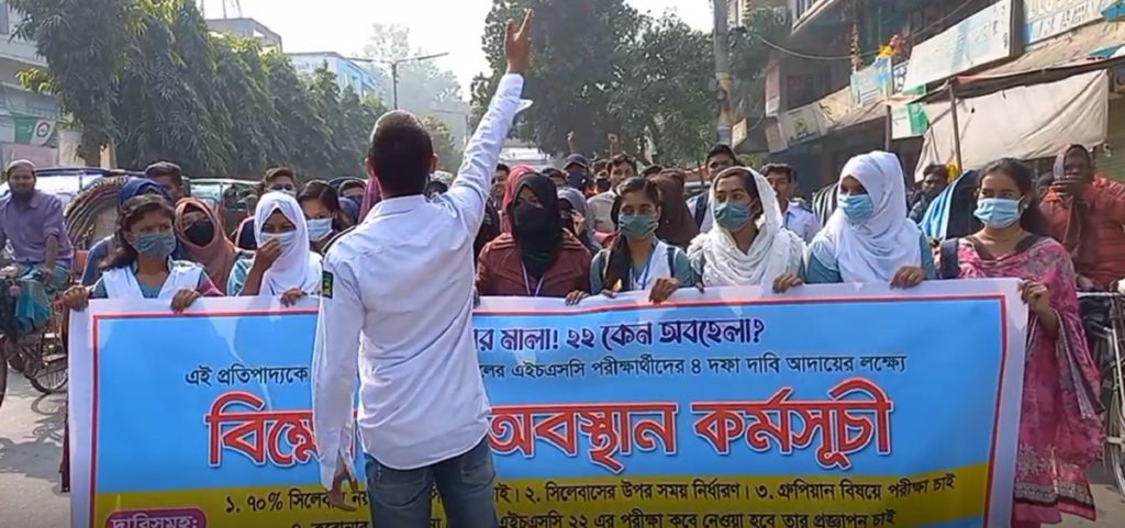 এই বিক্ষোভ কর্মসূচিতে শিক্ষার্থীদের তোলা দাবিগুলো হলো- ৭০% সিলেবাসের বদলে ৫০% সিলেবাস, সিলেবাসের ওপর সময় নির্ধারণ, গ্রুপিয়ান বিষয়ে পরীক্ষা ও করোনার ওজুহাত না দেখিয়ে এইচএসসি ২২ পরীক্ষা কবে নেয়া হবে তার প্রজ্ঞাপন প্রকাশ করা।