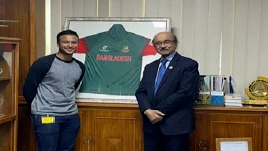 ব্যাংকের চূড়ান্ত অনুমোদন পেতে ‘বাংলাদেশ ব্যাংক’ এর গভর্নর ফজলে রাব্বি চৌধুরির সাথে দেখা করেছেন বাংলাদেশ জাতীয় ক্রিকেট দলের অলরাউন্ডার সাকিব আল হাসান। এ সময় সাকিবের সঙ্গে উপস্থিত ছিলেন পিপলস ব্যাংকের প্রস্তাবিত চেয়ারম্যান আবুল কাশেম।