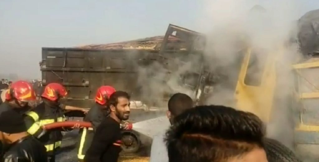 বঙ্গবন্ধু সেতু পূর্ব থানার এসআই নাজমুল হাসান জানান, সকাল দশটার দিকে ঢাকা থেকে ছেড়ে আসা সিমেন্ট বোঝাই ট্রাক ও উত্তরবঙ্গ থেকে ছেড়ে আসা ঢাকামুখী ভুট্টা বোঝাই ট্রাকের মুখোমুখি সংঘর্ষ হয়। এতে সাথে সাথেই ট্রাকের ইঞ্জিনে আগুন ধরে যায়। এ সময় দুই ট্রাকে থাকা সবাই দ্রুত সরে যেতে পারলেও আটকা পড়েন সিমেন্ট বোঝাই ট্রাকের চালক।