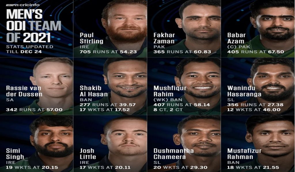 ২০২১ সালের পারফরমেন্সের ভিত্তিতে এই তালিকা প্রকাশ করা হয়। বাংলাদেশের তিন ক্রিকেটার ছাড়াও এতে আয়ারল্যান্ডের ৩ জন, পাকিস্তান ও শ্রীলঙ্কার ২ জন করে এবং দক্ষিণ আফ্রিকার ১ জন জায়গা পেয়েছেন। এই একাদশের অধিনায়ক করা হয়েছে পাকিস্তানের বাবর আজমকে।