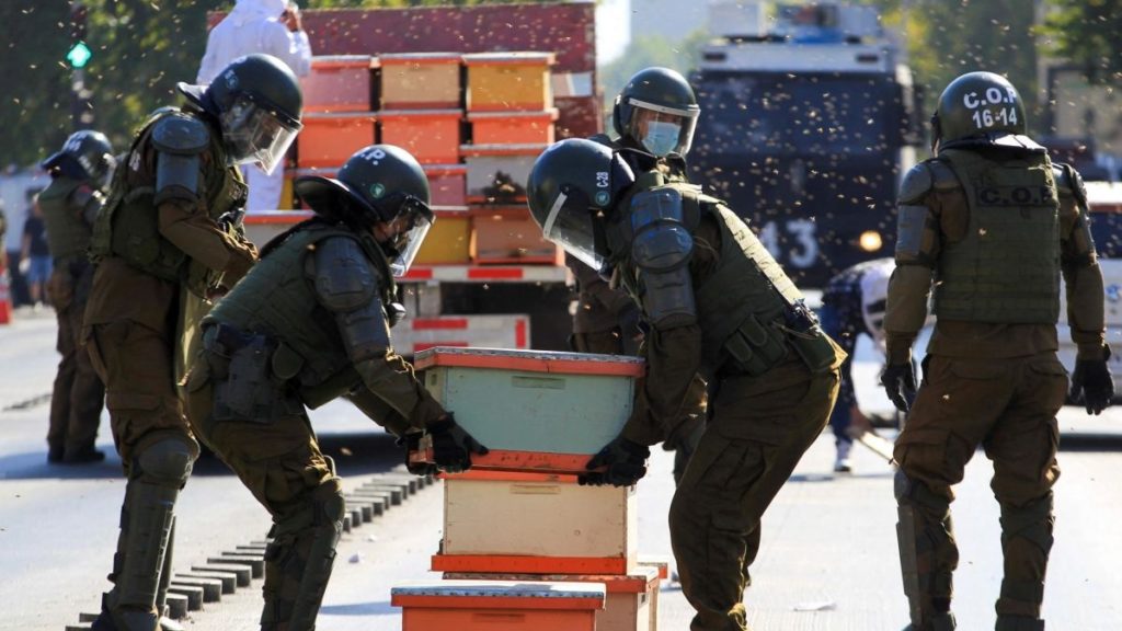 সিএনএন’র প্রতিবেদনে জানা যায়, বিক্ষোভের সময় সাত জন পুলিশ কর্মকর্তাকে মৌমাছি দংশন করেছে। চিলিতে দীর্ঘদিন ধরে চলমান খরার কারণে মৌচাষ কঠিন হয়ে পড়েছে। বিশেষ করে মৌমাছির খাবার ফুল ও শস্যের অনুপস্থিতি চরম আকার ধারণ করেছে।