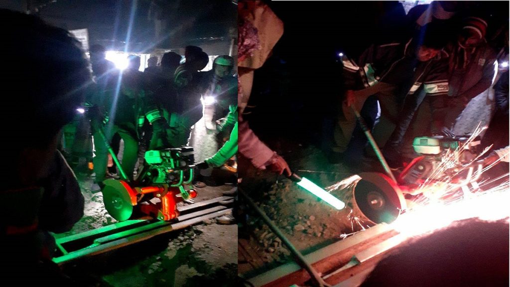 চলছে ভেঙ্গে যাওয়া রেললাইন মেরামতের কাজ।