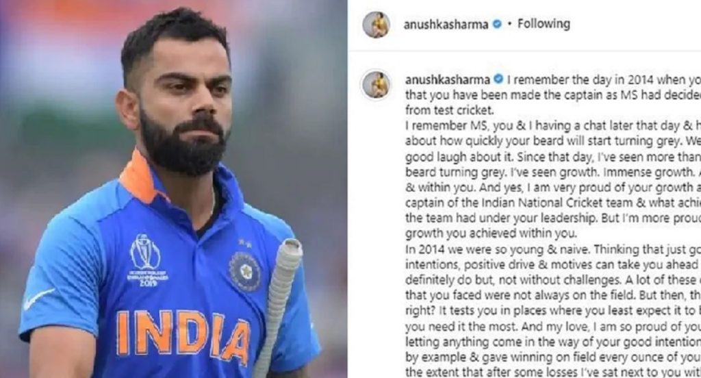 ভিরাটকে শুভেচ্ছা জানিয়ে সোশ্যাল মিডিয়ায় আনুশকা লিখেছেন, ২০১৪ সালে যখন টেস্ট ক্রিকেটের অধিনায়কত্ব নিয়েছিলে সেই দিনটির কথা আমার মনে পড়ছে। সাবেক অধিনায়ক এমএস ধোনির সঙ্গে কথোপকথনে ব্যস্ত ছিলে তুমি। হাসি মজার ছলে ধোনি সেদিন বলেছিলেন, দায়িত্ব নেয়ার পর অল্প দিনের মধ্যেই তার দাড়ি সাদা হতে শুরু করেছে। সেই মুহূর্তেই হো হো করে হেসে ওঠেন সবাই। ঠিকই তোমার দাড়ির রঙ পরিবর্তন হয়েছে। তুমি নিজেকে সমৃদ্ধ করেছ। একজন মানুষ এবং অধিনায়ক হিসেবে ভিরাট অনবদ্য। সেদিনের পর অনেক কিছু বদলে ছিল। ভিরাট অনেক বড় হয়েছিলেন। জাতীয় দলের হয়ে ভিরাট যতটা করেছেন, সেটি বলে বোঝানো সম্ভব নয়।