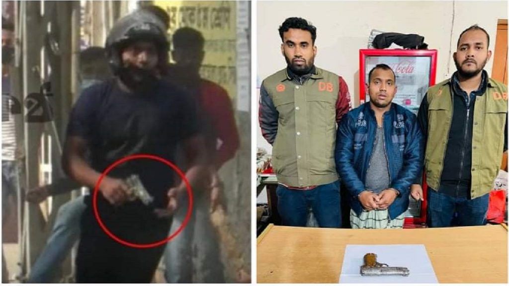 সিরাজগঞ্জ শহরে আওয়ামী লীগ ও বিএনপির সংঘর্ষ চলাকালে পিস্তল প্রদর্শনকারী সেই ৩ যুবকের আরেকজনকে ১৬ দিন পর গ্রেফতার করেছে ডিবি পুলিশ। এ সময় তার কাছ থেকে একটি পিস্তল ও এক রাউন্ড তাজা গুলি উদ্ধার করা হয়।