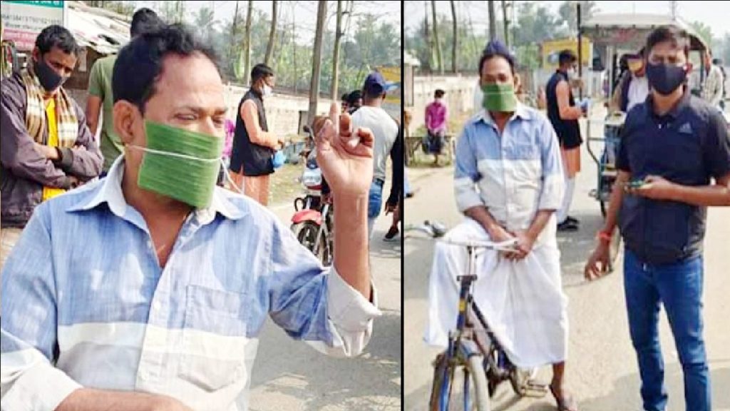 এশিয়ান নিউজের প্রতিবেদনে বলা হয়, পশ্চিমবঙ্গের দক্ষিণ ২৪ পরগনার জীবনতলা থানার মেহেরগড় এলাকার বাসিন্দা শেখ নাসিম কলাপাতার মাস্ক পরে হয়েছেন ভাইরাল। প্রতিবেদনে জানা যায়, বৃহস্পতিবার (২০ জানুয়ারি) সকালে সাইকেল নিয়ে বেরিয়েছিলেন নাসিম। বাজারে পৌঁছে দেখেন পুলিশ মাস্কবিহীন লোক পেলেই ধরপাকড় চালাচ্ছে। রাস্তায় রয়েছেন ওসি নিজেও।