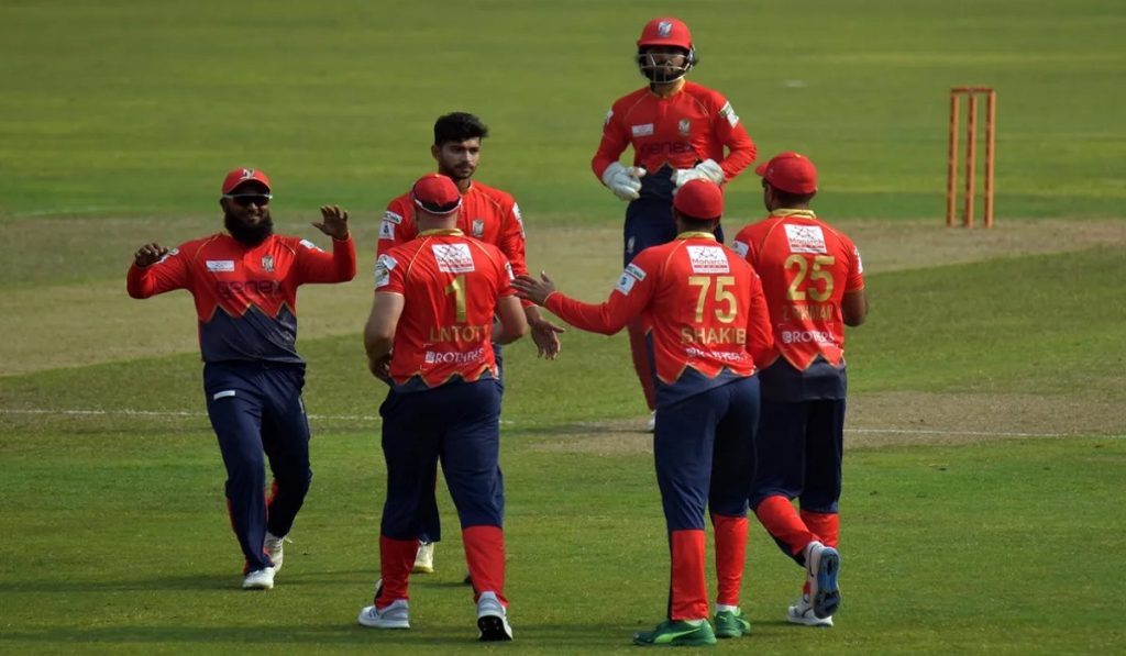 ১২৬ রানের জয়ের লক্ষ্যে ব্যাট করতে নেমে নিয়মিতভাবে চট্টগ্রাম অধিনায়ক মেহেদী মিরাজের বলে তোপের মুখে পড়ে সাকিবের দল। সবাই শুরু করেছেন ভালোই, কিন্তু ইনিংসকে টেনে নিতে পারেননি কেউ। ওপেনার সৈকত আলী করেছেন ৩৯ রান। ২ চারের সাহায্যে ১৬ বলে ১৩ রান করে মিরাজের বলে বোল্ড হয়েছেন সাকিব। এছাড়া ইরফান শুক্কুর ও তৌহিদ হৃদয় প্রত্যেকে আউট হয়েছেন ১৬ রান করে।
