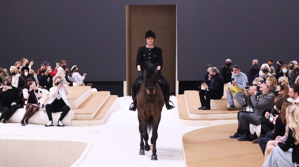 শ্যানেল জ্যাকেট ও কালো হেলমেট পরিহিত শালর্ট ক্যাসিরাঘি ঘোড়ায় চড়ে পুরো রানওয়ে প্রদক্ষিণ করার সময় চলছিল সেবাস্টিয়েন টেলিয়ারের লাইভ মিউজিক। মারগট রবি, ফেরেল উইলিয়ামস, ভোগ ম্যাগাজিনের এডিটর ইন চিফ অ্যানা উইন্টোরসহ অনেকেই ছিলেন দর্শক সারিতে।