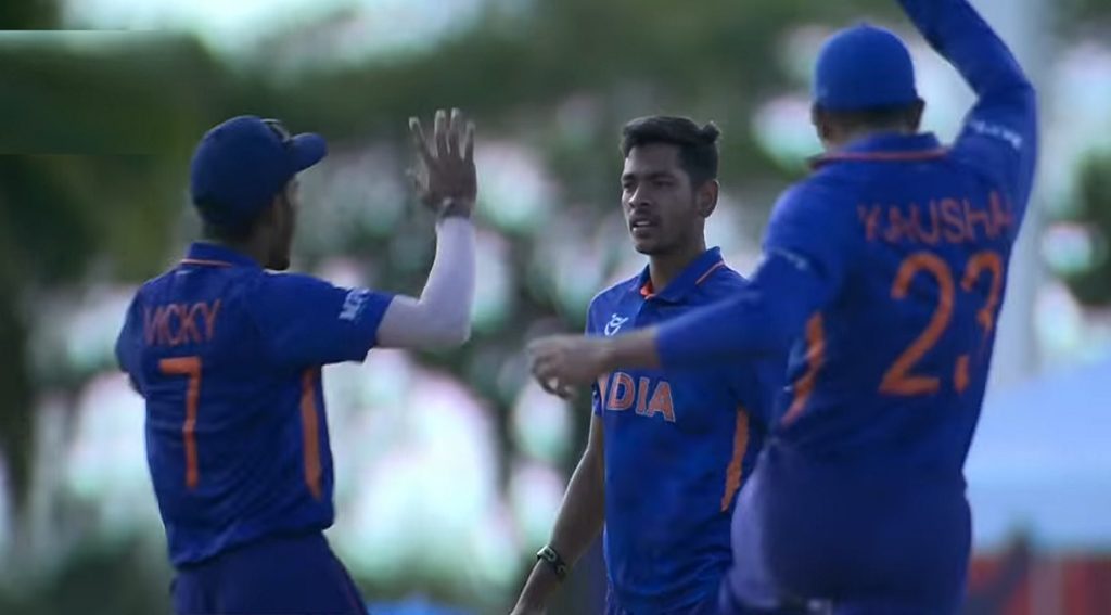 ভারতের বাঁহাতি মিডিয়াম পেসার রবি কুমারের বলেই সাজঘরে ফিরেছেন বাংলাদেশের তিন ব্যাটার। ওপেনার মাহফিজুল ইসলাম ২ রান করে বোল্ড হয়েছেন রবি কুমারে বলে। ক্রিজে বেশ কিছুক্ষণ সংগ্রাম করার পর ১৭ বলে ১ রান করা অপর ওপেনার ইফতেখার হোসেনও ফিরে গেছেন রবি কুমারের বলে। তারপর বাংলাদেশের ইনিংসে আবারও আঘাত হানেন একই বোলার; ব্যক্তিগত ৭ রানের মাথায় প্যাভিলিয়নে ফিরে যান প্রান্তিক নওরোজ নাবিল।