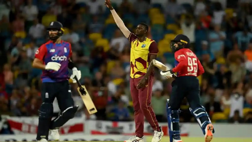 জবাবে আকিল হোসেন ও জেসন হোল্ডারের বোলিংয়ে শুরুতেই চাপে পড়ে ইংলিশরা। জেমস ভিন্সের ৫৫ আর স্যাম বিলিংসের ৪১ ছাড়া বলার মত কেউ স্কোর করতে না পারলে জয় থেকে ১৭ রান আগে থামে স্বাগতিকরা।