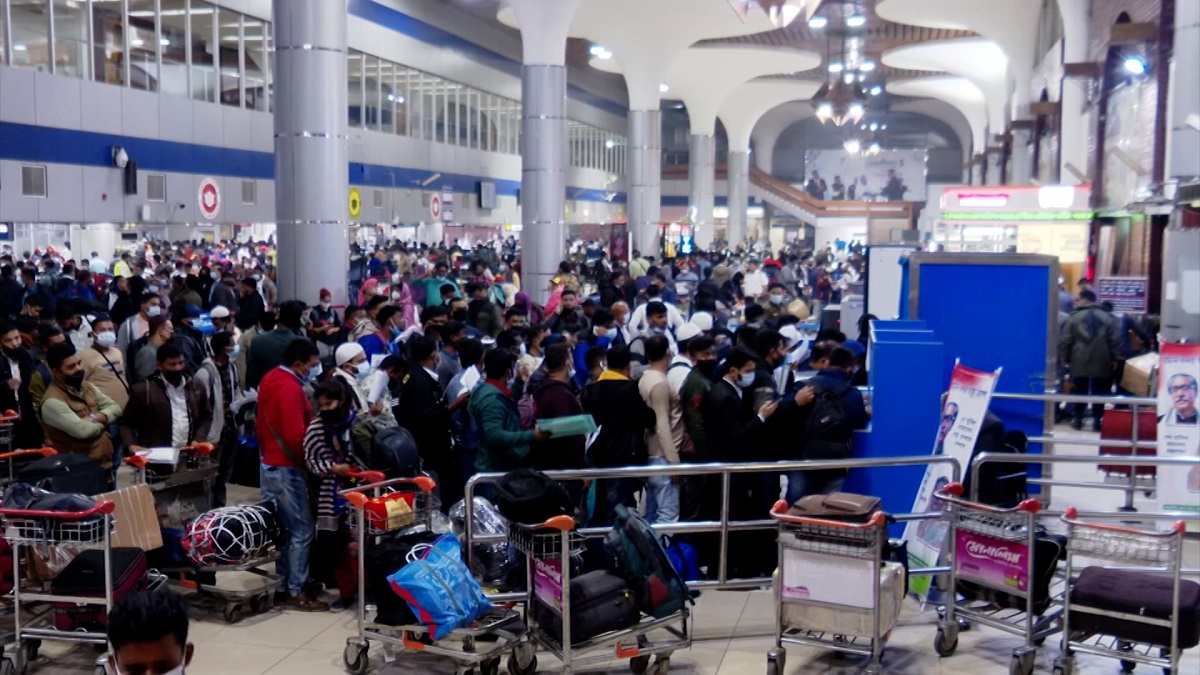 হযরত শাহজালাল বিমানবন্দরে উদগ্রীব মধ্যপ্রাচ্যগামী মানুষগুলো বাধ্যতামূলক আরটিপিসিআর টেস্টের জন্য নমুনা দিয়ে অপেক্ষায় রয়েছেন ঘণ্টার পর ঘণ্টা। এমন হযবরল অবস্থার মধ্যেই কেউ পাচ্ছেন কোভিড নেগেটিভ সনদ, কেউ বা শুনছেন দুঃসংবাদ।