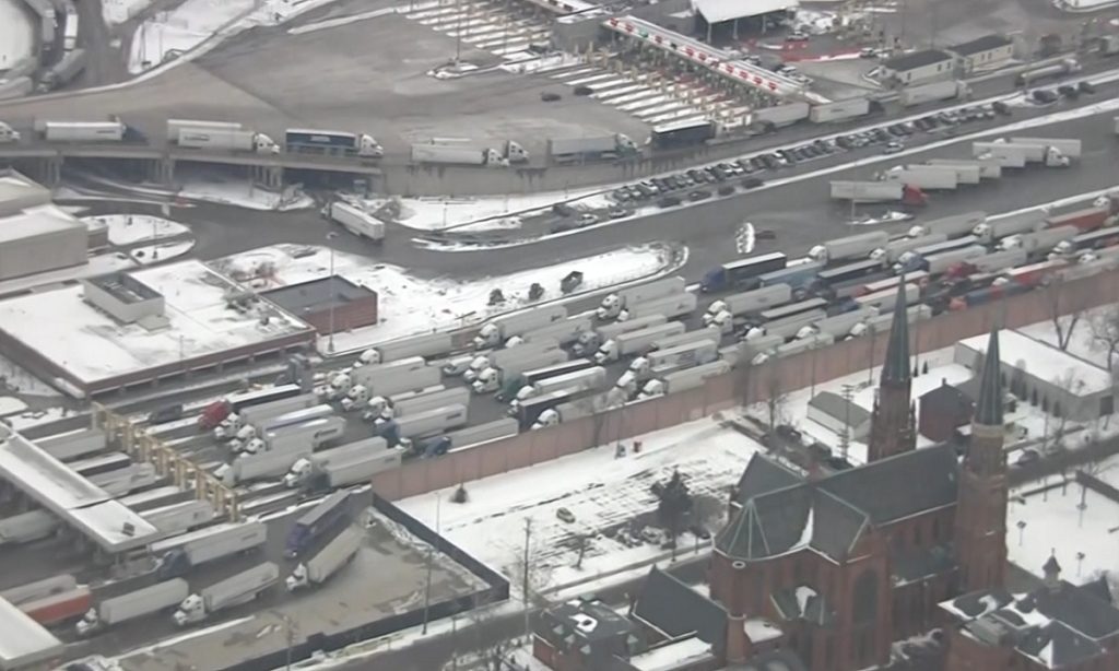 কানাডা থেকে যুক্তরাষ্ট্রে যাওয়ার ব্যস্ততম গুরুত্বপূর্ণ সীমান্ত ক্রসিং ‘অ্যাম্বাসেডর ব্রিজ’ অচল করে দিলো ভ্যাকসিন বিরোধী আন্দোলনকারীরা।