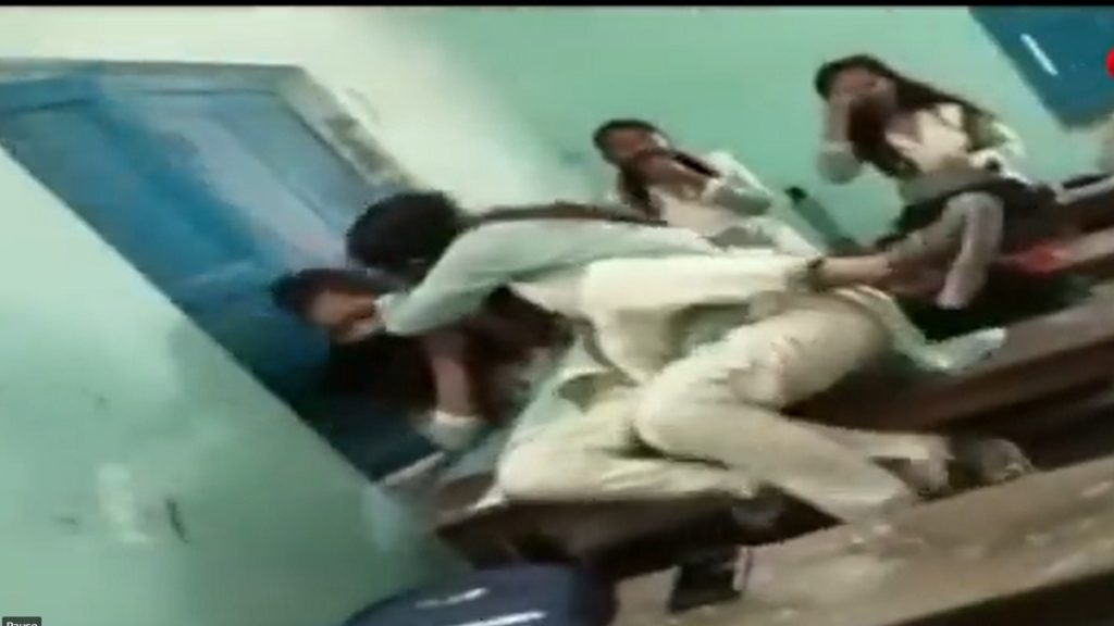ভারতীয় গণমাধ্যম জি২৪ ঘণ্টার প্রতিবেদনে বলা হয়, প্রথম বেঞ্চে কে বসবে তা নিয়ে ক্লাসরুমে শুরু হয় দ্বাদশ শ্রেণীর দুই ছাত্রীর কথা কাটাকাটি। পরে এক পর্যায়ে হাতাহাতিতে গড়ায়। অন্য এক ছাত্রী আবার গোটা ঘটনাটি ভিডিও করে মোবাইলে। সেই ভিডিওটি ভাইরাল হয়েছে সোশ্যাল মিডিয়ায়। বিষয়টি খতিয়ে দেখার আশ্বাস দিয়েছে স্কুল কর্তৃপক্ষ।