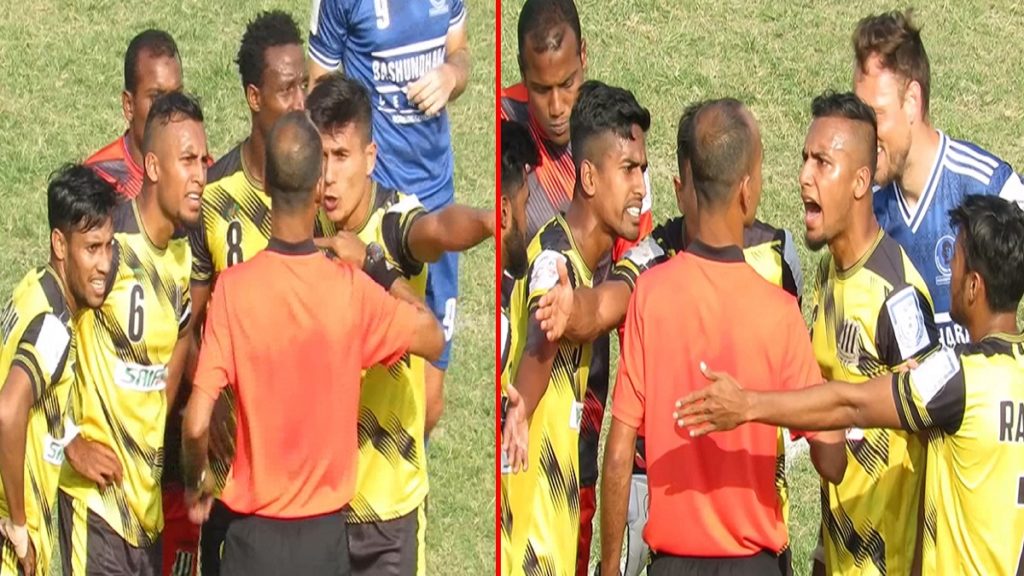 বিতর্কিত এক পেনাল্টির সিদ্ধান্ত দিয়ে তীব্র সমালোচনার মুখে পড়েছেন রেফারি বিটু রাজ। এবার তিনি জন্ম দিলেন নতুন আলোচনার। ভুক্তভোগী সাইফ স্পোর্টিং ক্লাবের অধিনায়ক জামাল ভূঁইয়ার বিরুদ্ধে তিনি এনেছেন ভুতুড়ে এক লাথির অভিযোগ। সেই লাথির আবার সত্যতা মেলেনি ম্যাচের কোনো ভিডিও ফুটেজে। গোপনীয়তা লঙ্ঘন করে প্রকাশ্যে আনা হয়েছে অভিযোগ। অভিযোগ মিথ্যা দাবি করে শোকজের জবাব দিয়েছেন জামাল ভুঁইয়া।