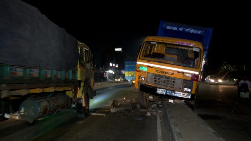 প্রত্যক্ষদর্শীরা জানান, রাত দেড়টার দিকে কোকাকোলা মোড়ে ইউটার্ন নিচ্ছিল একটি প্রাইভেটকার। এ সময় নিয়ন্ত্রণ হারিয়ে প্রাইভেটকারকে ধাক্কা দিয়ে রোড আইল্যান্ডের ওপর উঠে যায় সিমেন্টবাহী একটি কাভার্ড ভ্যান। এ সময় পেছনে থাকা আরেকটি কভার্ড ভ্যান সামনের কাভার্ড ভ্যানকে ধাক্কা দেয়।