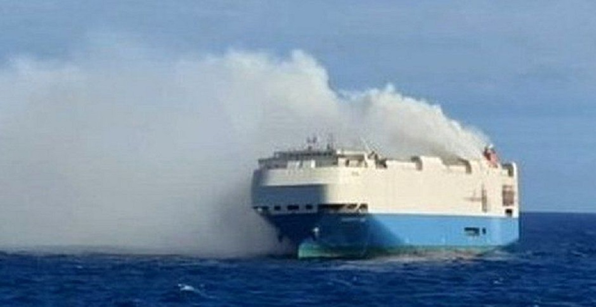 বিলাসবহুল গাড়ি বহনকারী কার্গো জাহাজে আগুন