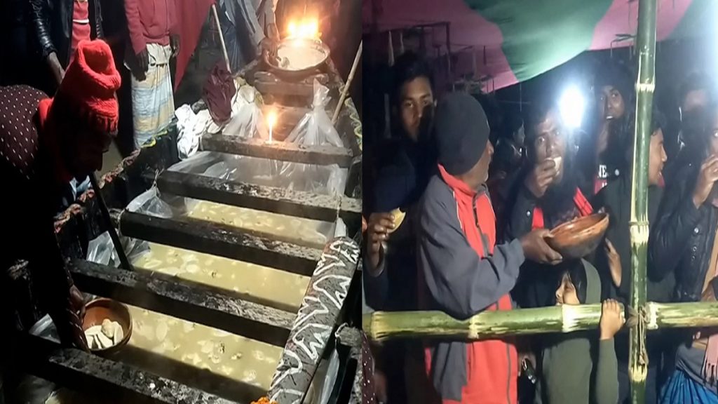 নৌকায় ভেজানো দুধ চিতই! খেলে পূরণ হয় মনের আশা; সেড়ে যায় রোগবালাইও। ফরিদপুরের নগরকান্দায় প্রতি বছর মাঘী পূর্ণিমাতে কথিত এক পীরের বাড়িতে করা হয় এমন আয়োজন। ২৫ বছর ধরে চলে আসছে এই রীতি।