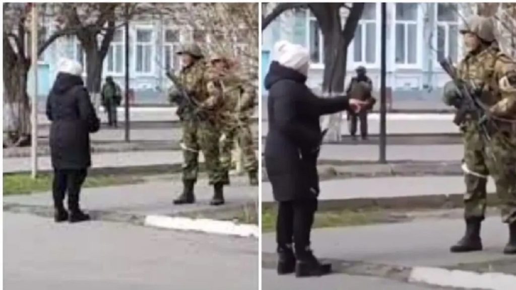 সম্প্রতি সামাজিক যোগাযোগমাধ্যম টুইটারে একটি ভিডিও ছড়িয়ে পড়েছে। যেখানে দেখা যাচ্ছে ইউক্রেনের একজন মহিলা সশস্ত্র এক রুশ সেনাকে জিজ্ঞেস করছেন, ‘তুমি এখানে দাঁড়িয়ে আছো কেন?’ যার জবাবে রুশ ওই সেনা উত্তর দিয়েছেন, ‘আমরা পাহারা দিচ্ছি, আপনি এখান থেকে চলে যান।’