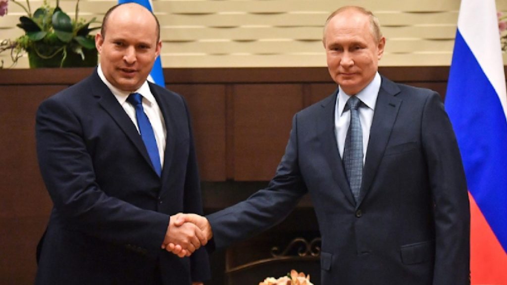 ইউক্রেনে রাশিয়ার চলমান আগ্রাসনের মধ্যেই মস্কো সফরে গেছেন ইসরায়েলের প্রধানমন্ত্রী নাফতালি বেনেট। রয়টার্স বলছে, রুশ প্রেসিডেন্ট ভ্লাদিমির পুতিনের সাথে আলোচনা করার জন্যই তিনি রাশিয়া সফর করেছেন।