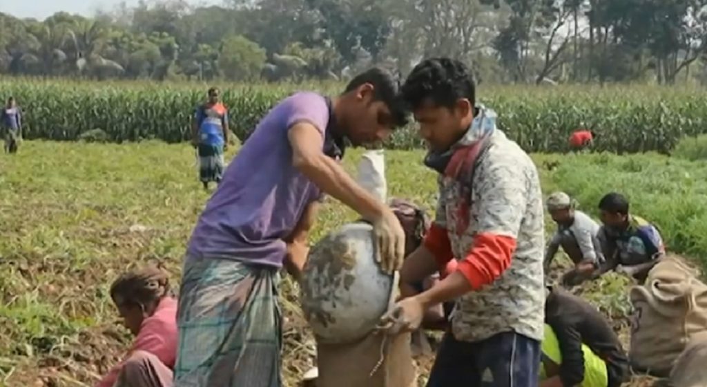 মেহেরপুরে এবার আলুর বাম্পার ফলন হয়েছে। কিন্তু দাম পড়ে যাওয়ায় উৎপাদন খরচ তুলতে পারছে না কৃষক। হতাশ হয়ে পড়েছেন অনেকে। নগদ অর্থের প্রয়োজন বাড়তে থাকায় মাঠ থেকেই অনেকে আলু বিক্রি করতে বাধ্য হচ্ছেন। মধ্যসত্বভোগীরা এই সুযোগ কাজে লাগিয়ে হিমাগারে আলু সংরক্ষণ করছেন।