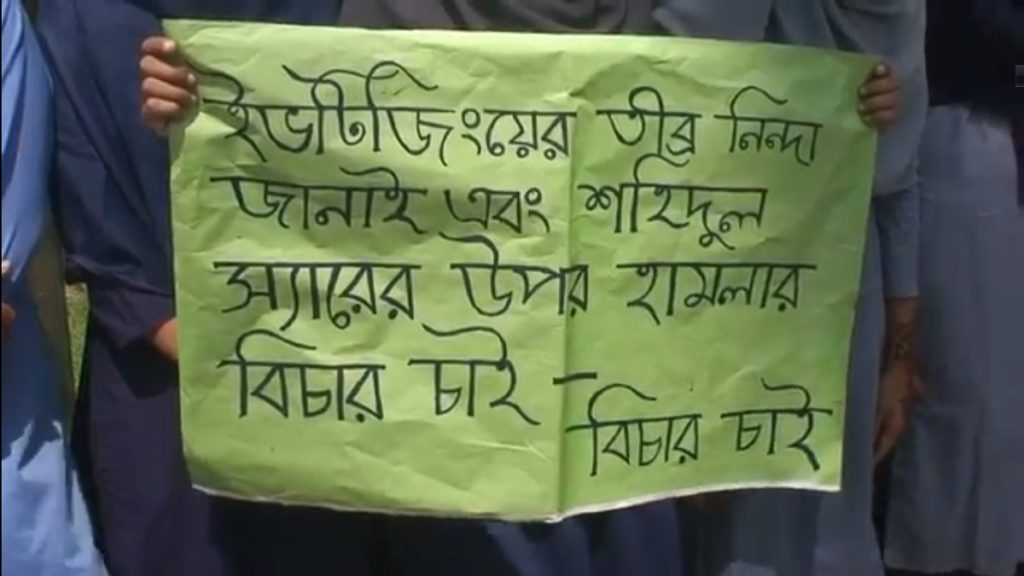 সুনামগঞ্জের ছাতকের সাউথ ওয়েস্ট সারেহ আহমদ স্কুল এন্ড কলেজের এক ছাত্রীকে ইভটিজিং থেকে বাঁচাতে গিয়ে বখাটেদের মারধরের শিকার হয়েছেন শিক্ষক। এই ঘটনায় নিয়মিত বখাটেদের উৎপাতের অভিযোগ করে ও হামলার বিচার দাবিতে বিক্ষোভ করেছে প্রতিষ্ঠানটির সকল শ্রেণির শিক্ষার্থীরা।
