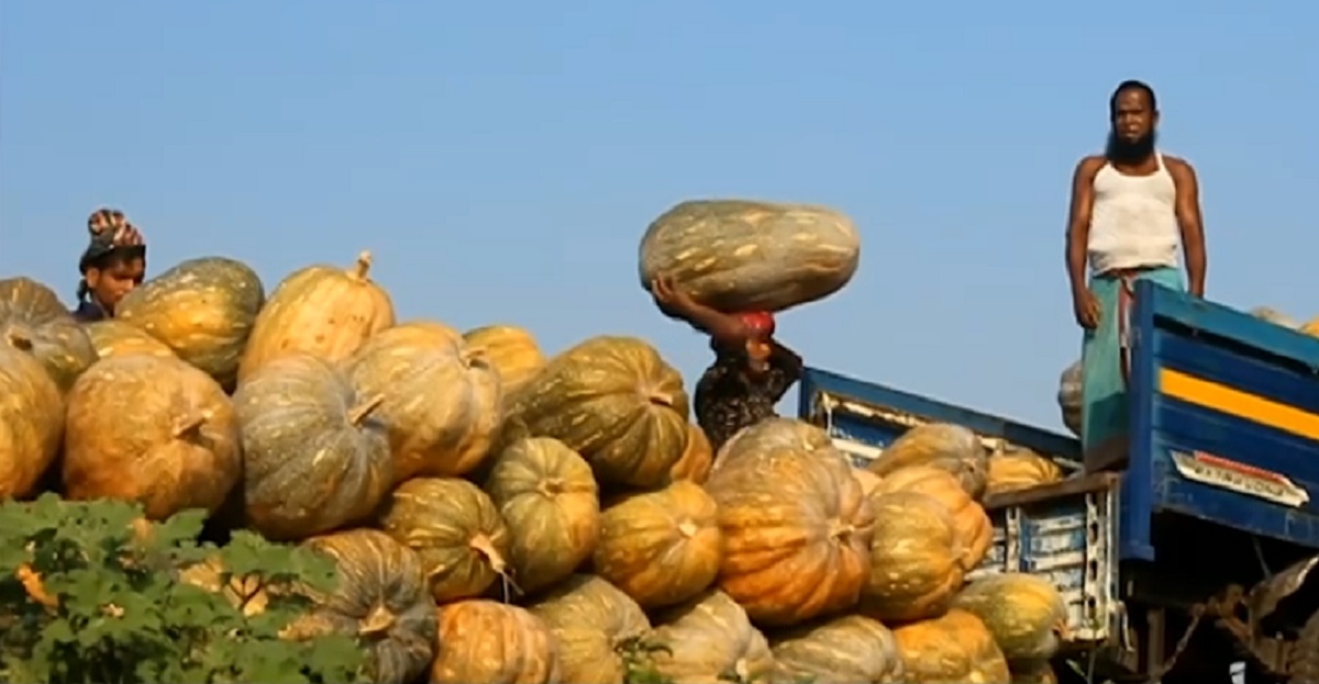দেশি জাতের মিষ্টি কুমড়া ঠিক কতো বড় হতে পারে? ৫ থেকে ১০ কেজি বা ২০ কেজি? কিন্তু মুন্সিগঞ্জের আড়িয়ল বিলের প্রতিটি কুমড়ার ওজন হয় ২০ কেজি থেকে ৩ মণ পর্যন্ত। সামান্য পরিচর্যাতেই এই বিশাল আকৃতির কুমড়ার উৎপাদন হয় এই বিলে।