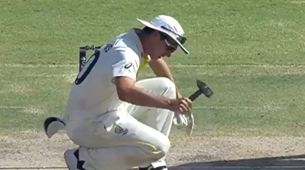 মূলত টেস্টের প্রথম তিন দিন একক আধিপত্য দেখিয়েছে অস্ট্রেলিয়ান ব্যাটাররা। অস্ট্রেলিয়ার প্রথম ইনিংসে করা ৫৫৬ রানের বিশাল পুঁজির জবাবে ব্যাট করতে নেমে মাত্র ১৪৮ রানে গুটিয়ে যায় পাকিস্তান। এরপর, আবার চলতে থাকে ব্যাটারদের দাপট। পাকিস্তানের দ্বিতীয় ইনিংসে বাবর আজম ও আব্দুল্লাহ শফিকের কাউকে আউট করতে না পেরে হতাশায় ভোগেন অস্ট্রেলিয়ার বোলার-ফিল্ডাররা। এসময় পিচে অসমান বাউন্স হতে দেখা যায়। তাছাড়া বোলিংয়ের সময় ল্যান্ডিংয়েও ভুগতে হচ্ছিল বোলারদের। তাই আম্পায়ারদের তত্ত্বাবধানে গ্রাউন্ড স্টাফদের কাজ নিজেই শুরু করেন কামিন্স; ছোট একটি হাতুড়ি নিয়ে পিচে বাড়ি দেন।
