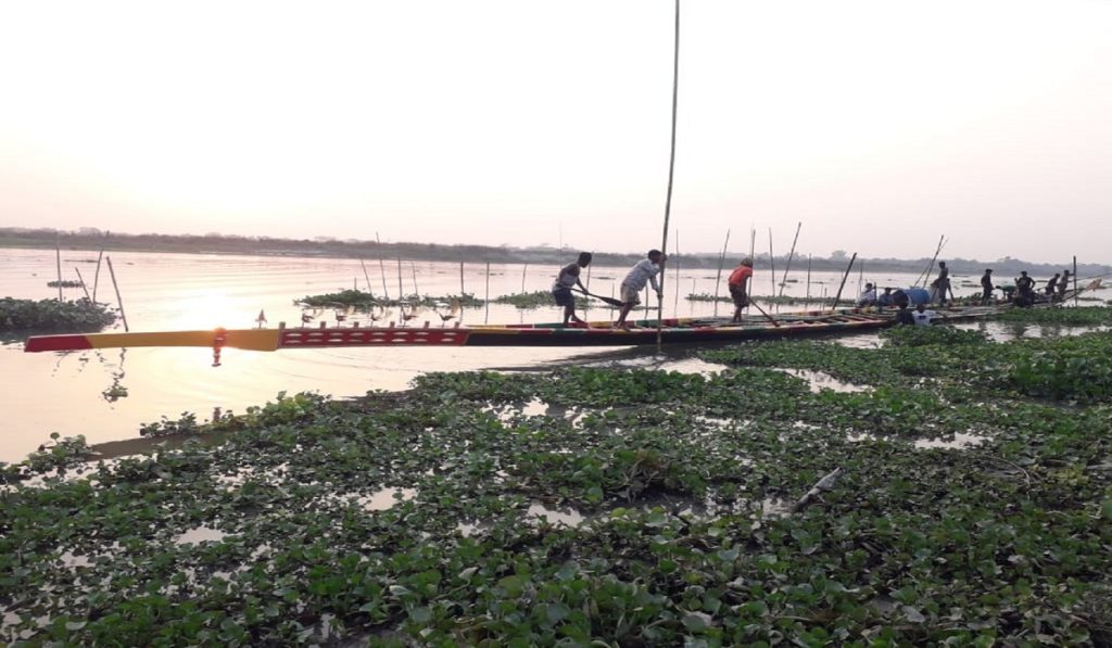 বঙ্গবন্ধুর জন্মদিন উপলক্ষে আড়িয়াল খাঁ নদে ভাসানো হলো ১০৮ হাতের বাইচের নৌকা