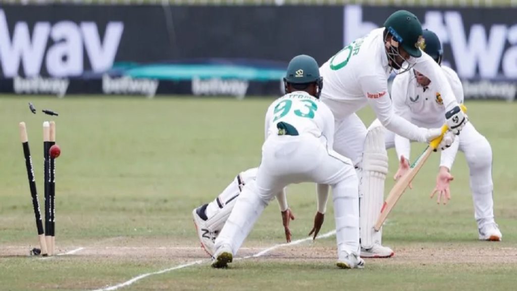 চতুর্থ ইনিংসে ব্যাট করতে নেমে ৬ ওভারেই জয়ের আশা বহুদূর নিয়ে যায় ব্যাটারদের ব্যর্থতা। টানা ৩ উইকেট পড়ে যাওয়ার পর মুশফিকুর রহিম সামাল দেবেন বিপর্যয়, এমনটিই ছিল আশা। কিন্তু পরের দিন সবার আগে সেই মুশফিকই দেখিয়ে দেন সাজঘরে ফেরার পথ। কেশব মহারাজের বলে এলবিডব্লিউ হন মুশফিক। তারপর তো দ্বিতীয় সর্বনিম্ন ইনিংসের কথা সবারই জানা।