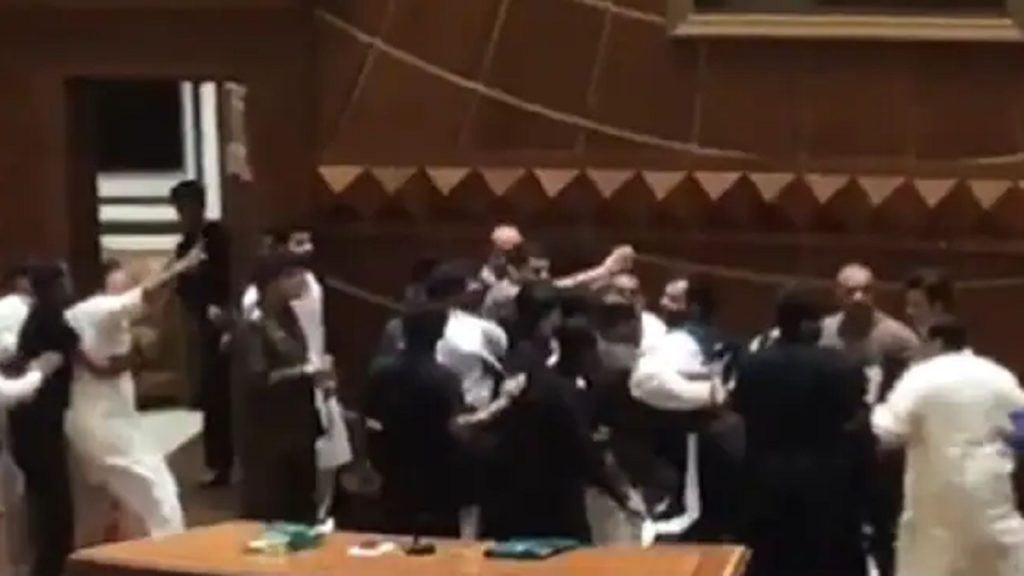 Pti and pmlQ members resorting to violence eventually in Punjab assembly. Assault on Deputy speaker Dost Mazari makes it another sad day for democracy in this country and a blatant violation of LHC order.