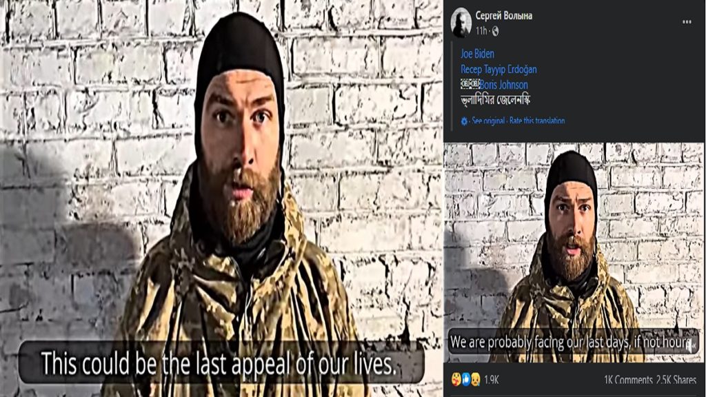 মারিওপোলে এখনও রুশ বাহিনীর বিরুদ্ধে লড়াই চালিয়ে যাওয়া শেষ ইউক্রেনীয় সেনাদলের কমান্ডার মেজর. সার্হেই ভোলিয়ানা বলেছেন, আমরা জীবনের শেষ দিনের মুখোমুখী এখন, এর স্থায়ীত্ব কয়েক ঘণ্টাও হতে পারে। অসংখ্য বেসামরিক নাগরিকসহ আহত অন্তত ৫০০ ইউক্রেনীয় সেনা সমগ্র বিশ্বের কাছে প্রাণ বাঁচানোর আকুতি জানাচ্ছে। খবর এনবিসি নিউজের।