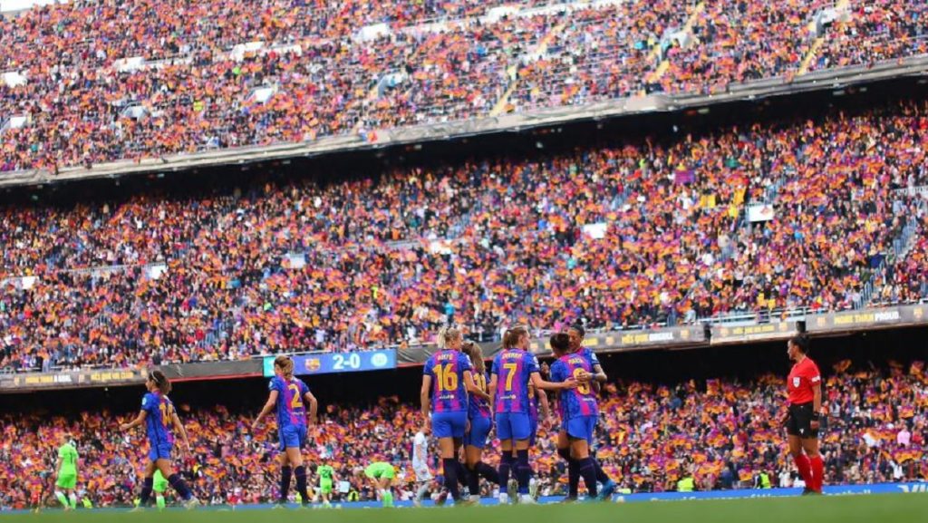 সর্বোচ্চ দর্শক উপস্থিতির রেকর্ড গড়লো বার্সেলোনা নারী দল। উলভসবার্গের বিপক্ষে লিগের ম্যাচটি দেখতে ইউরোপের সর্ববৃহৎ ফুটবল স্টেডিয়াম বার্সার দুর্গ ন্যু ক্যাম্পে উপস্থিত হয়েছিল ৯১ হাজার ৬৪৮ জন দর্শক।