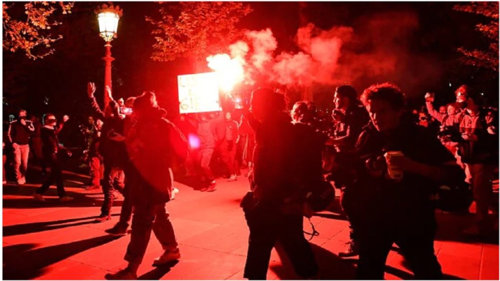 ফ্রান্সের স্থানীয় গণমাধ্যম অনুযায়ী কিছু সংখ্যক তরুণ রাজধানীর প্লেস দিলাতে জড়ো হতে শুরু করে এবং তারা ম্যাকরন ও ল্যু পেনের বিরুদ্ধে স্লোগান দিতে শুরু করে। জানা যায়, মধ্য রাতের পর ১০০ জনের মত বিক্ষোভকারী আইনশৃংখলা রক্ষাকারী বাহিনীদের হেনস্থা করতে শুরু করে এবং স্লোগান দিতে থাকে, আমরা ফ্যাসিস্ট নই।