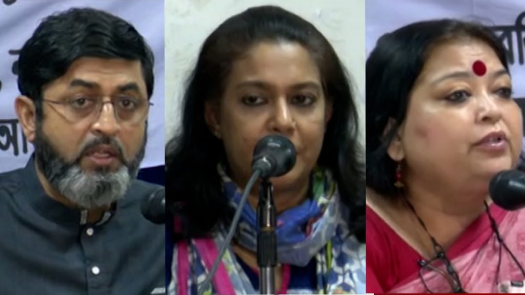 এএলআরডি, বাপা, বেলা, আসক, ব্লাস্ট, গ্রীন ভয়েস, নিজেরা করি, নাগরিক উদ্যোগ, নারীপক্ষ, বাংলাদেশ উদীচী শিল্পী গোষ্ঠী, হিউম্যান রাইটস সাপোর্ট সোসাইটি ও টিআইবি এ সংবাদ সম্মেলনের আয়োজন করে। সংবাদ সম্মেলনে বক্তব্য রাখেন বেলার নির্বাহী সভাপতি সৈয়দা রিজওয়ানা হাসান, নিজেরা করির সমন্বয়ক খুশী কবির, বাংলাদেশ পরিবেশ আন্দোলনের (বাপা) যুগ্ম সম্পাদক স্থপতি ইকবাল হাবিবসহ অনেকে।