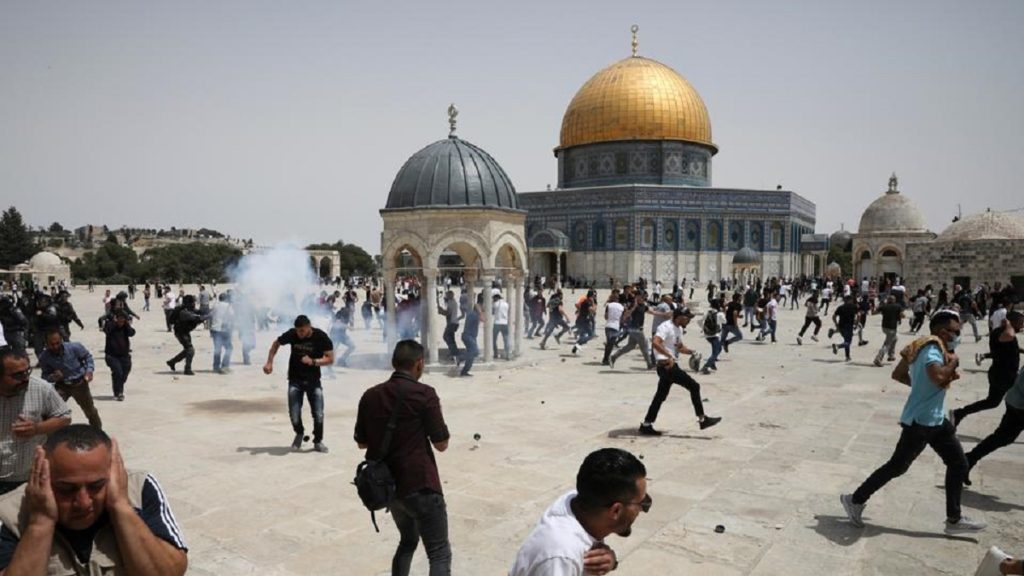 ফিলিস্তিনের আল আকসা মসজিদে ইসরাইয়েলি পুলিশের সাথে ফিলিস্তিনিদের সংঘর্ষের ঘটনা ঘটেছে। শুক্রবার (২৯ এপ্রিল) সকালে এ সংঘর্ষের ঘটনা ঘটে। ফিলিস্তিনি রেড ক্রিসেন্ট জানায়, এ সংঘর্ষে কমপক্ষে ৪২ জন আহত হয়েছে।