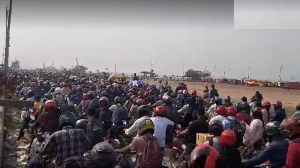 রোববার (১ মে) সকাল থেকেই শিমুলিয়া ঘাটে ভিড় করতে থাকে সাধারণ মানুষ। কিন্তু দীর্ঘ যানজট থাকায় পায়ে হেঁটেই ঘাটে যাচ্ছেন অনেকে। যাত্রী পরিবহনকারী গাড়িগুলো ফেরিতে উঠতে না পারলেও মোটরসাইকেল ঠিকই উঠতে পারছে। হাজারো মোটরমসাইকেল ভিড় করছে ঘাটে। অতিরিক্ত চাপের কারণে এক নম্বর ঘাট শুধু মোটরসাইকেলের জন্য বরাদ্দ করেছে কর্তৃপক্ষ। সকাল থেকে আবহাওয়া ভালো থাকায় নির্বিঘ্নে ফেরি ও লঞ্চ চলাচল করতে পারছে।