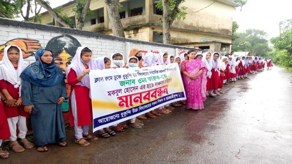নরসিংদীর বেলাবোতে স্থানীয় এক স্কুল শিক্ষককে শ্রেণিকক্ষে ঢুকে শিক্ষার্থীদের সামনে লাঞ্ছিত করার বিচার চেয়ে মানববন্ধন করেছে স্কুলের শিক্ষার্থীরা। মঙ্গলবার (১০ মে) দুপুরে স্কুল প্রাঙ্গনে এ মানববন্ধন করে তারা।
