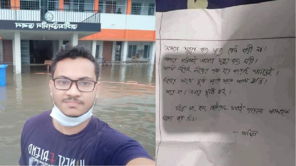 সুইসাইড নোটে লেখা ছিলো- ‘আমার মৃত্যুর জন্য কেউ দায়ী নয়, আমার মস্তিষ্কই আমার মৃত্যুর জন্য দায়ী। আমি নিজেই নিজের শত্রু হয়ে পড়েছি অজান্তেই। নিজের সাথে যুদ্ধ করতে করতে আমি ক্লান্ত। আর না। এবার মুক্তি চাই। প্রিয় মা, বাবা, ছোটবোন সবাই পারলে আমাকে ক্ষমা করে দিও। -অমিত।’