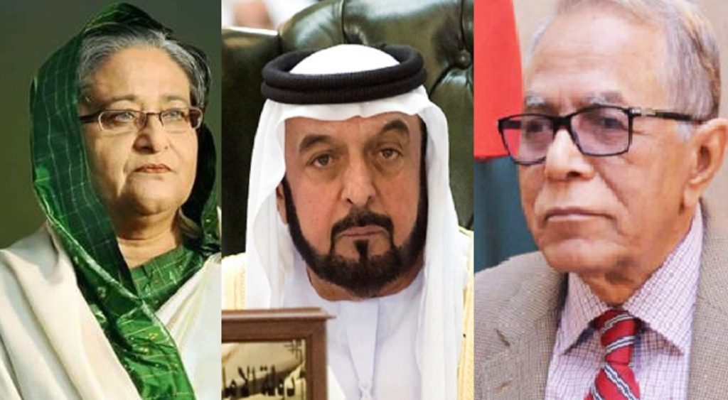 আমিরাতের প্রেসিডেন্টের মৃত্যুতে গভীর শোক প্রকাশ করেছেন প্রধানমন্ত্রী। শোকবার্তায় রাষ্ট্রপতি বলেন, বাংলাদেশ ও সংযুক্ত আরব আমিরাতের মধ্যে সম্পর্ক উন্নয়নে প্রয়াত প্রেসিডেন্ট শেখ খলিফা বিন জায়েদ আল নাহিয়ান গুরুত্বপূর্ণ ভূমিকা রেখেছেন। তার মৃত্যুতে বাংলাদেশে একজন পরীক্ষিত ও অকৃত্রিম বন্ধুকে হারালো।