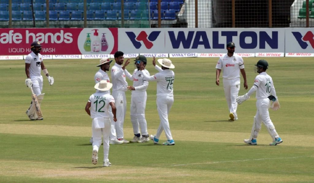 সড়ক দুর্ঘটনায় নিহত অজি ক্রিকেটার অ্যান্ড্রু সাইমন্ডসের স্মরণে এক মিনিট নীরবতা পালন করে শুরু হয় চট্টগ্রাম টেস্ট। শ্রীলঙ্কার হয়ে ইনিংস শুরু করেন দিমুথ করুনারত্নে এবং ওসাদা ফার্নান্দো। ২৩ রানে এই জুটি ভাঙেন স্পিনার নাঈম হাসান। দারুণ ফর্মে থাকা লঙ্কান অধিনায়ক দিমুথ করুনারত্নেকে ৯ রানে ফেরান এই অফ স্পিনার। টেস্টে বিগত এক বছরে ওপেনারদের মধ্যে সর্বোচ্চ রান করা এই ওপেনারকে শুরুতেই ফিরিয়ে দেয়া আত্মবিশ্বাস যোগাবে টাইগার শিবিরে। ক্রিজে আছেন এখন ওসাদা ফার্নান্দো এবং কুশল মেন্ডিস।