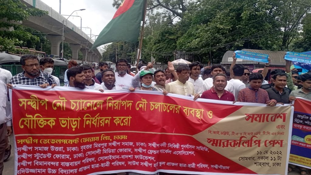 সন্দ্বীপ নৌ চ্যানেলে নিরাপদ নৌ চলাচলের ব্যবস্থা ও যৌক্তিক ভাড়া নির্ধারণের দাবিতে সমাবেশ এবং স্মারকলিপি পেশ কর্মসূচি পালন করে ঢাকাস্থ সন্দ্বীপের ১২টি সংগঠন।